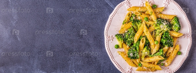 Паста с брокколи, зеленым горошком, чесноком, сыром