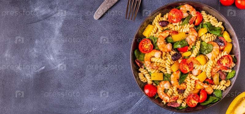 Салат из макарон Фусили с креветками