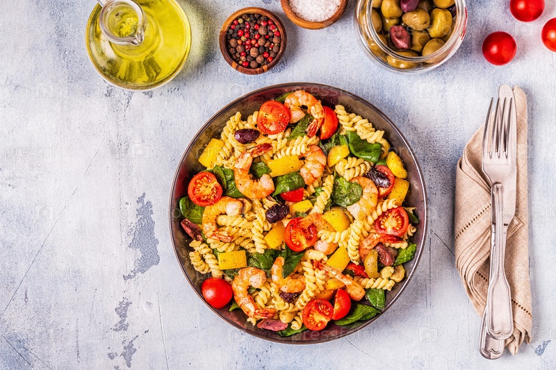 Салат из макарон Фусили с креветками