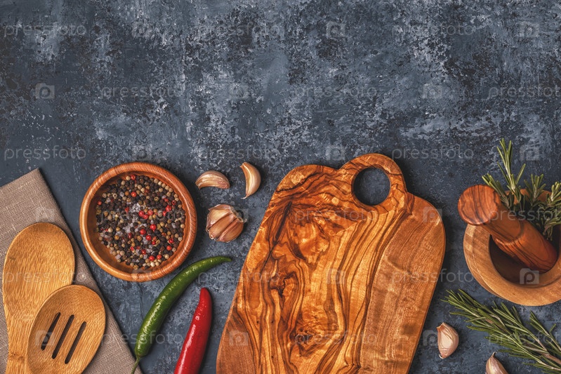 Разделочная доска и специи для приготовления пищи