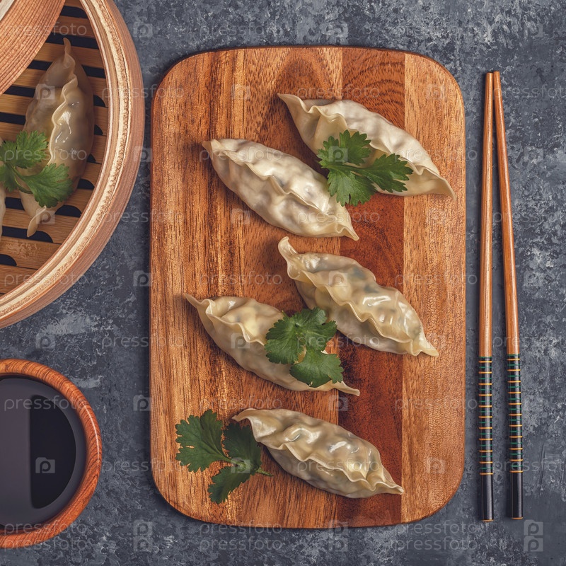 Свежие пельмени на фоне темного камня