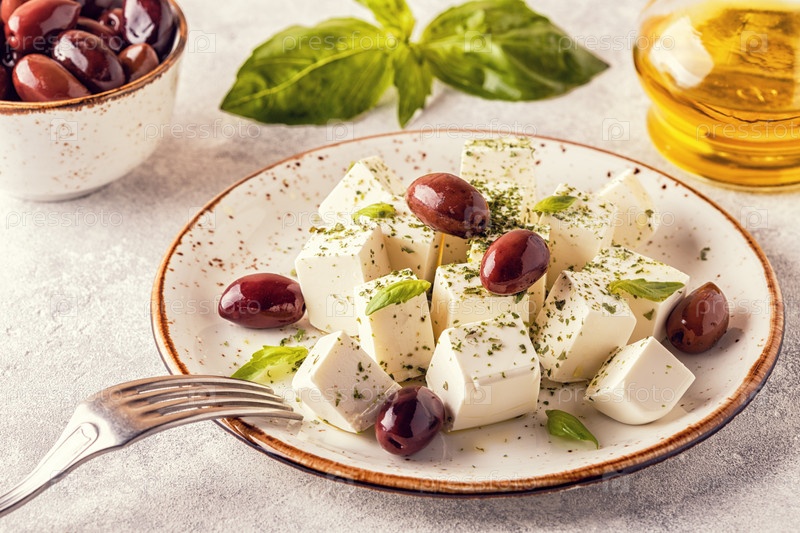 Греческий сыр фета с орегано и оливками