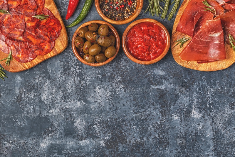 Испанские тапас с чоризо, хамоном, стол для пикника