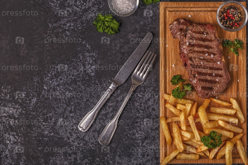 Стейк барбекю из говядины с картофелем фри