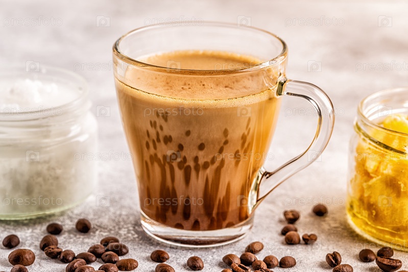 Кофе, смешанный с маслом ги и кокосовым маслом MCT