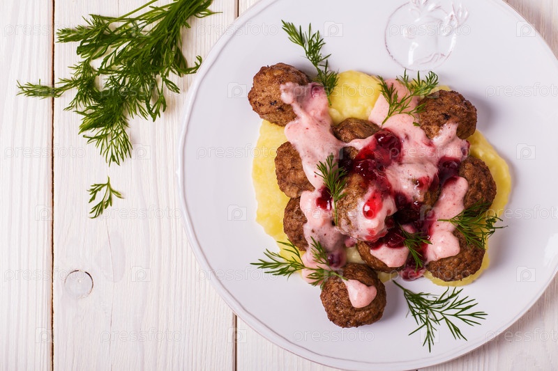 Шведские фрикадельки с брусничным сливочным соусом