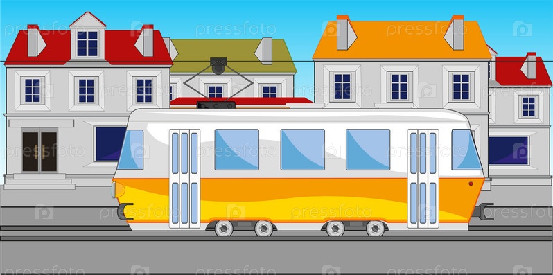 Трамвай общественного транспорта на улице города