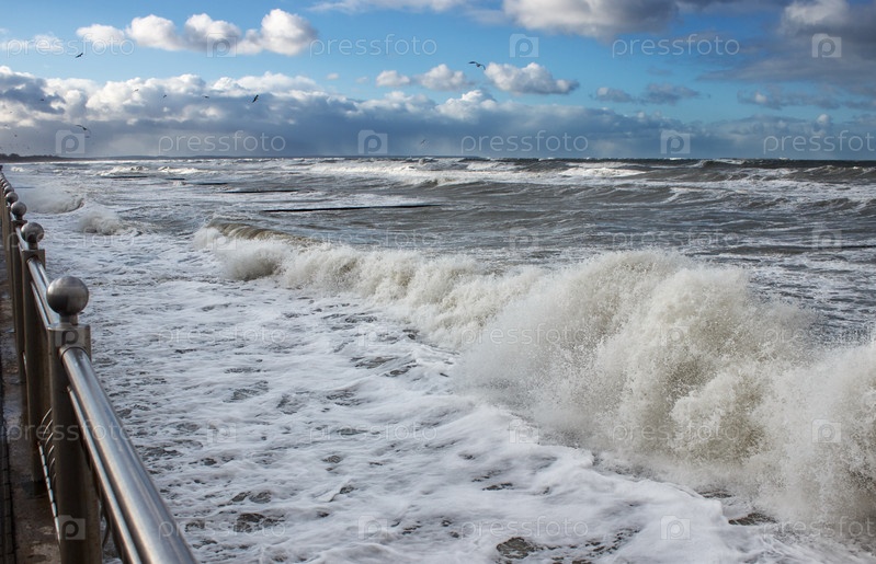 Сильный шторм на Балтийском море в солнечный зимний день