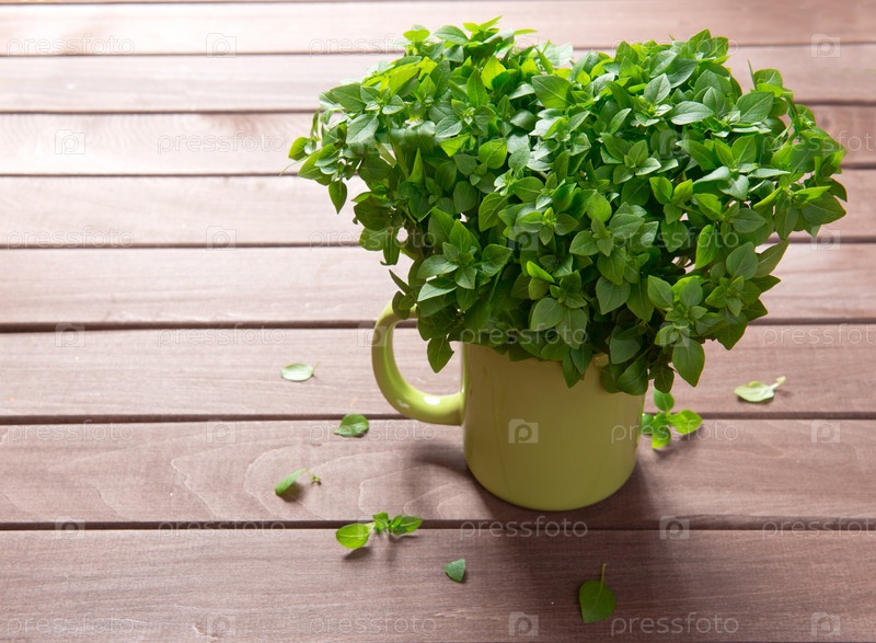Свежий базилик на деревянном фоне