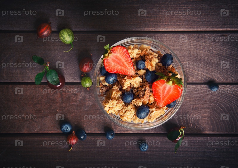 Здоровый завтрак на деревянном столе