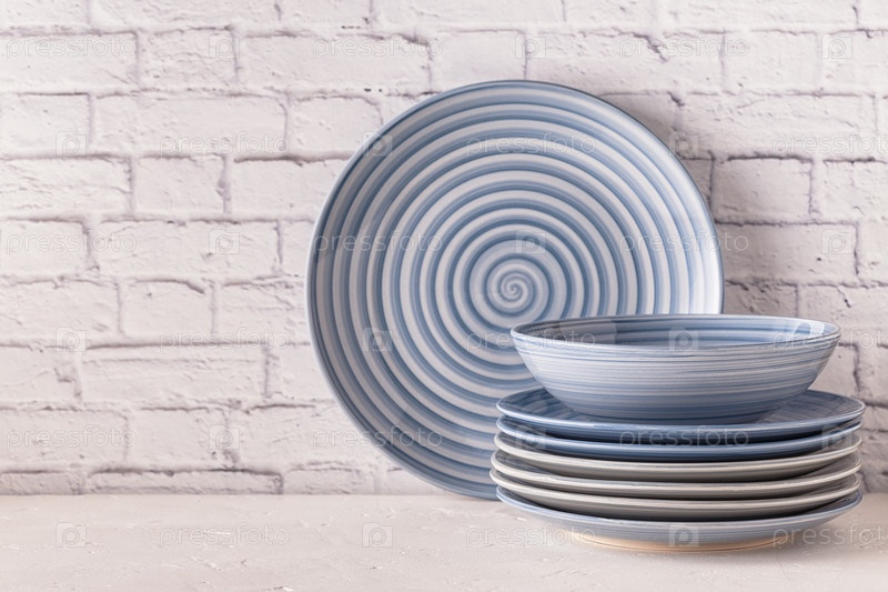 Посуда на светлом столе с копией пространства