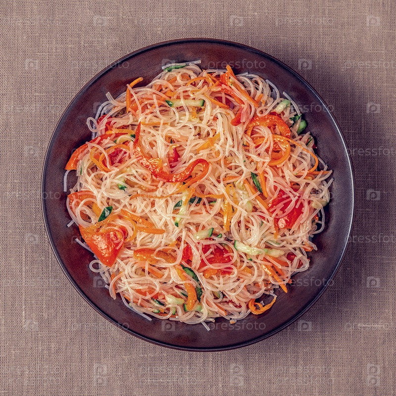 Салат из стеклянной лапши с огурцом, перцем и морковью