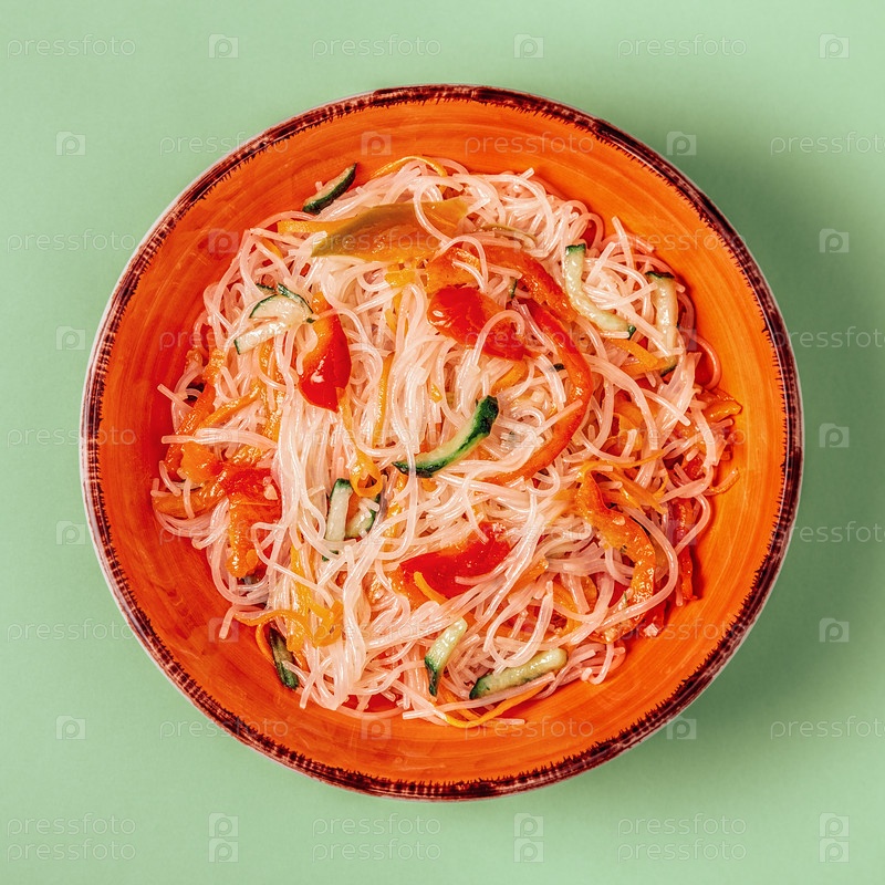 Салат из стеклянной лапши с огурцом, перцем и морковью