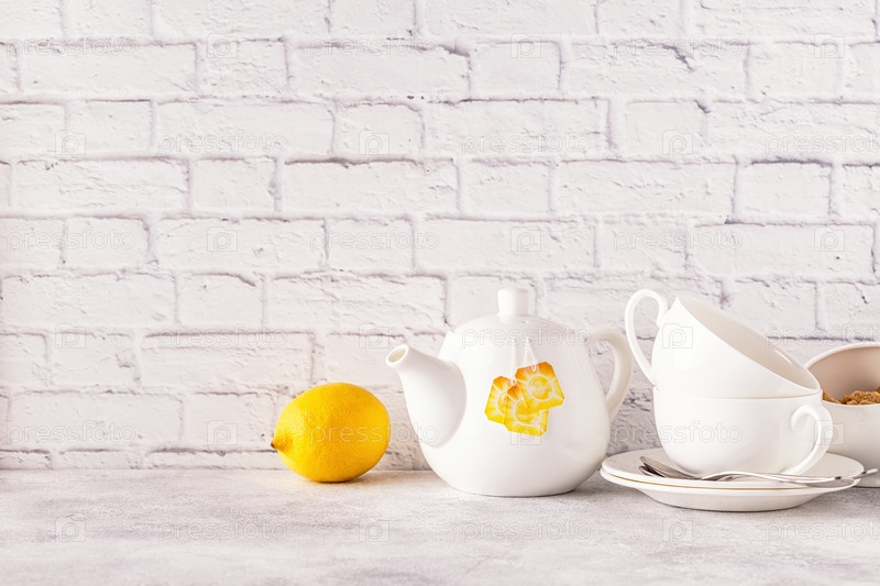 Две чашки и чайник для утреннего чая