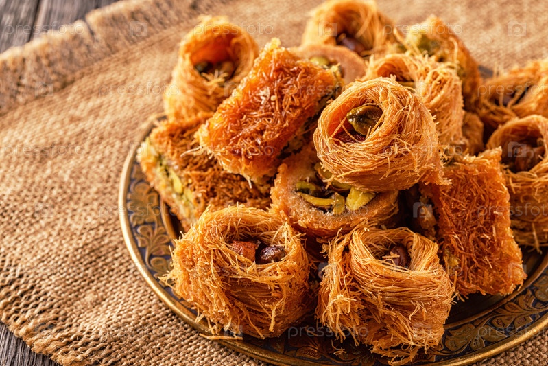 Восточные сладости на старом деревянном столе