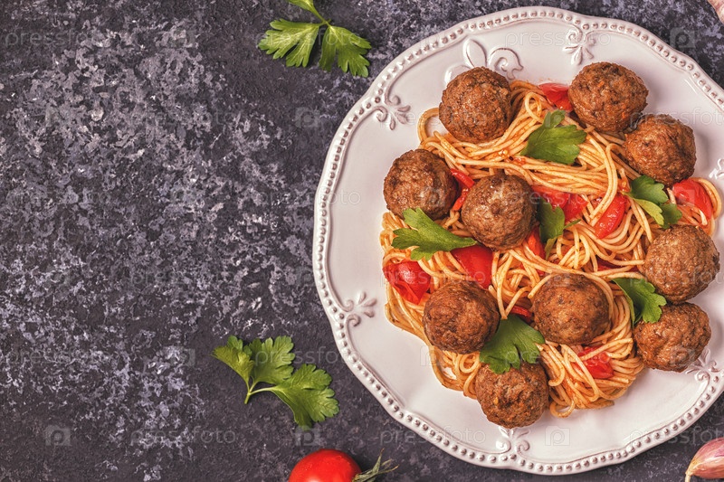 Жареные фрикадельки со спагетти