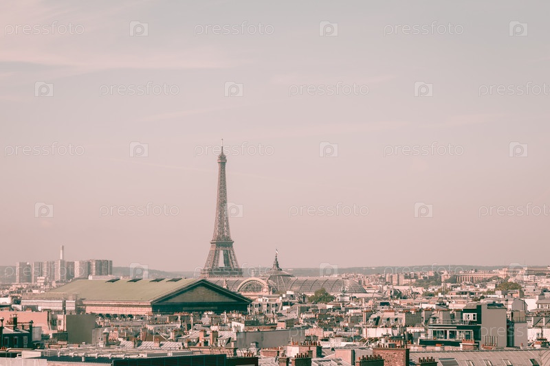 Вид на городской пейзаж на красивые здания и Эйфелеву башню