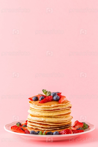 Блины с ягодами на ярком пастельном фоне