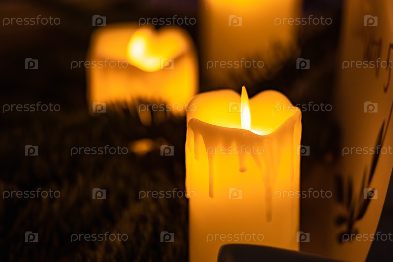 Крупный план классической свечи с горящим оранжевым пламенем