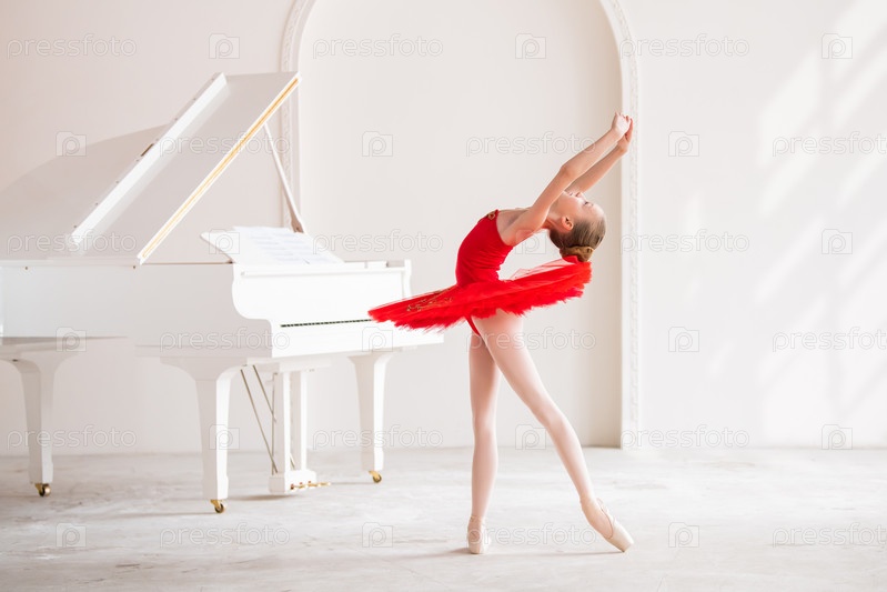 Милая маленькая девочка мечтает стать профессиональной балериной. В белой комнате, рядом с роялем, на пуантах танцует девушка в ярко-красной пачке. Ученик профессионального училища