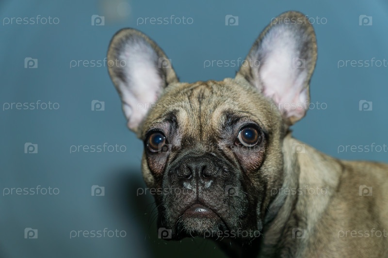 Щенок французского бульдога позирует перед камерой. Портрет питомца