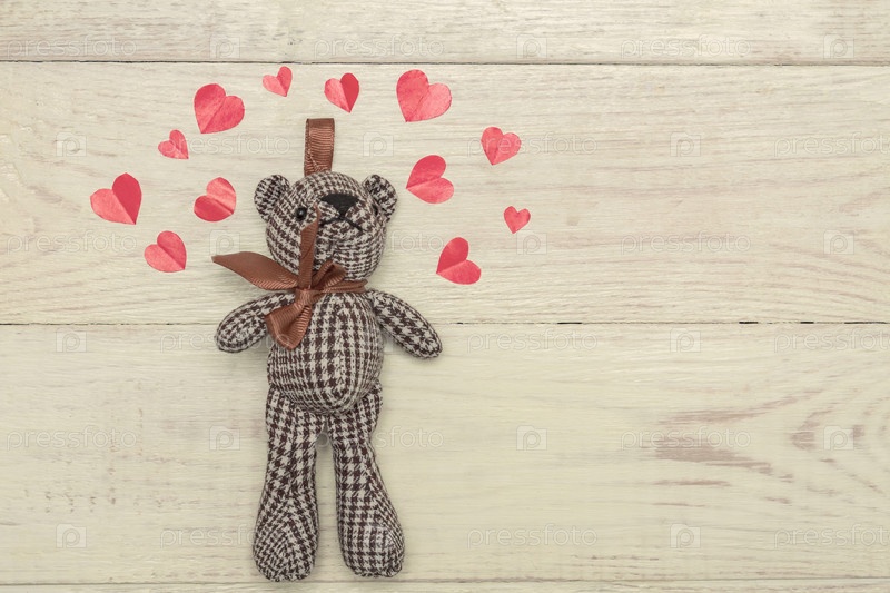 День святого Валентина. Бумага Любовь сердце. Плюшевый мишка. Креативная открытка на дереве