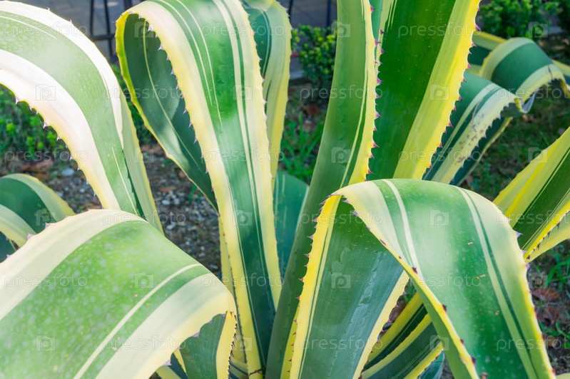 Крупный план американской полосатой агавы, растущей на плантации