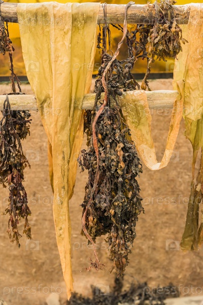 Процесс обезвоживания морской капусты ламинарии японской