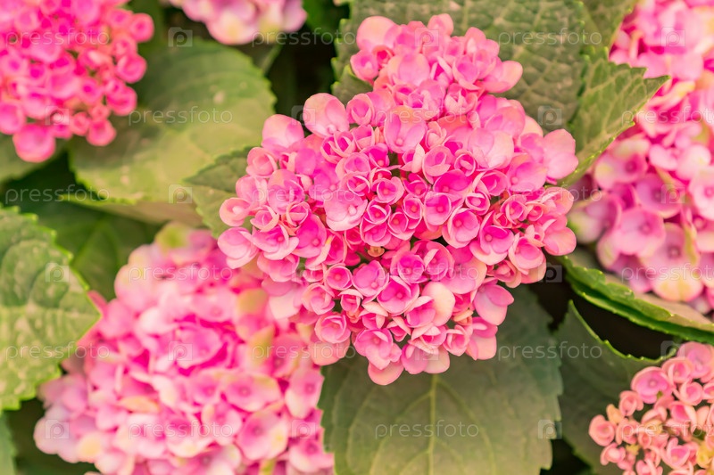 Красивые цветущие розовые цветы гортензии фон