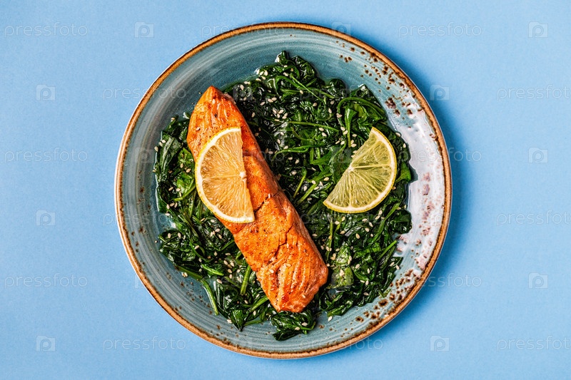 Лосось на гриле со шпинатом