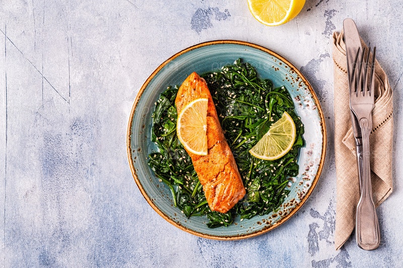Лосось на гриле со шпинатом