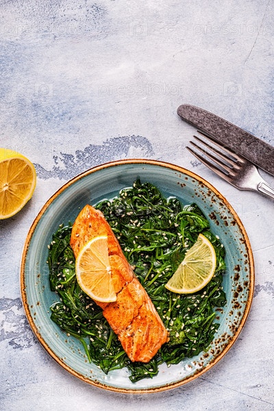Лосось на гриле со шпинатом