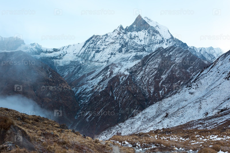 Вид на гору Мачапучаре из Непала, что означает гору Рыбий хвост, заповедник Аннапурна, Гималаи, Непал