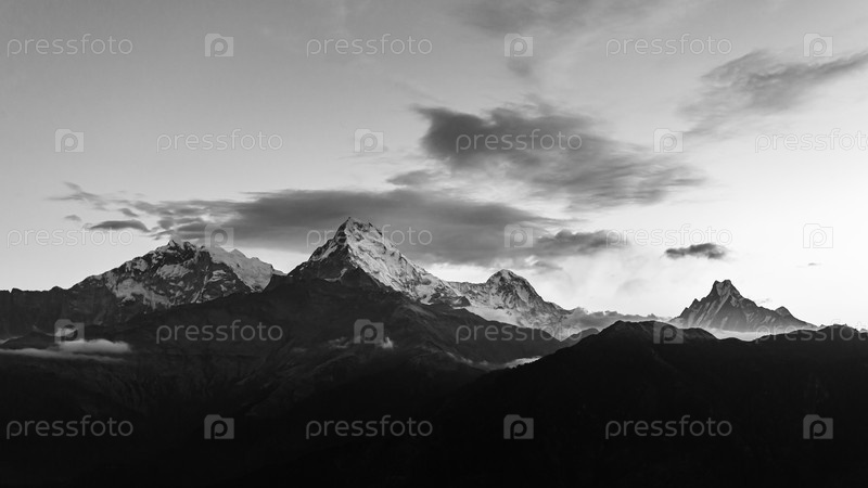 Вид на горный хребет Аннапурны с холма Пун на восходе солнца. Это знаменитая смотровая площадка в деревне Горепани в заповеднике Аннапурна, Непал