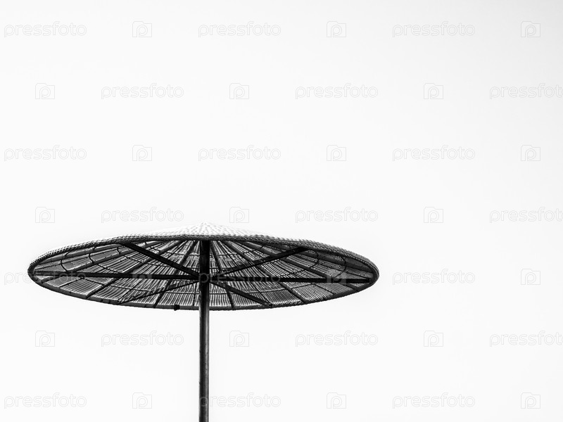Черно-белый соломенный тент в солнечный летний день, тропический фон
