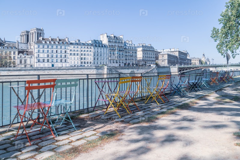 Пустое уличное кафе на берегу Сены