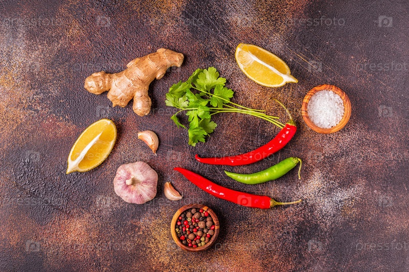 Еда фон с овощами, специями, травами