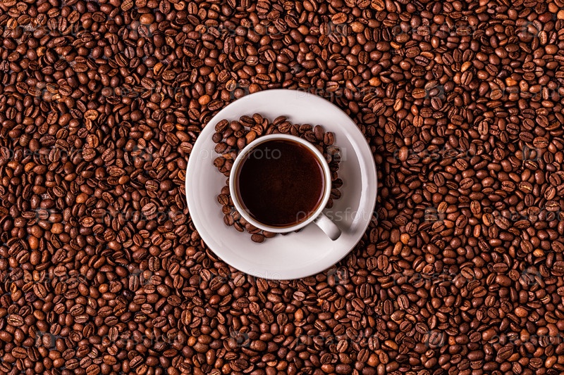 Чашка кофе на фоне кофейных зерен