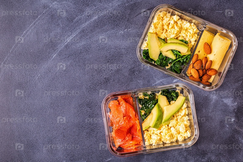 Здоровый сбалансированный ланч-бокс, обед на кетогенной диете