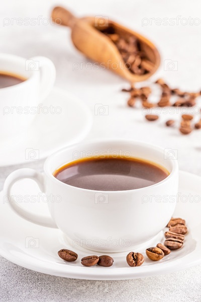 Концепция утреннего кофе, кофе-брейк на светлом фоне