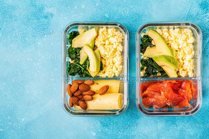 Здоровый сбалансированный ланч-бокс, обед на кетогенной диете