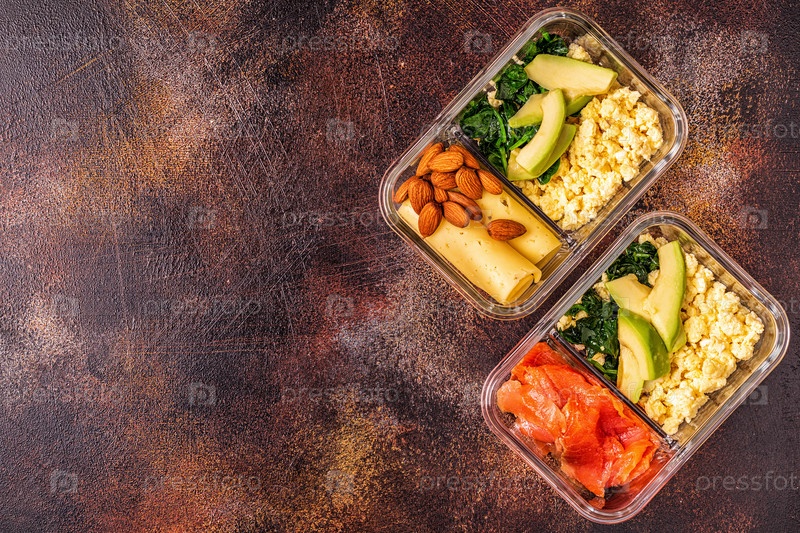 Здоровый сбалансированный ланч-бокс, обед на кетогенной диете