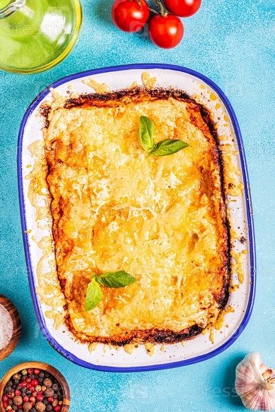 Традиционная итальянская лазанья с овощами, мясным фаршем и сыром