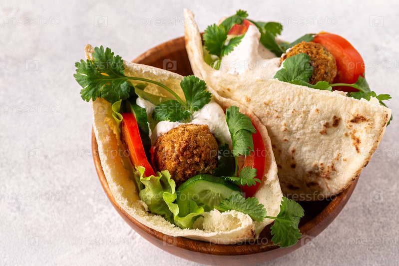 Фалафель и свежие овощи в лаваше