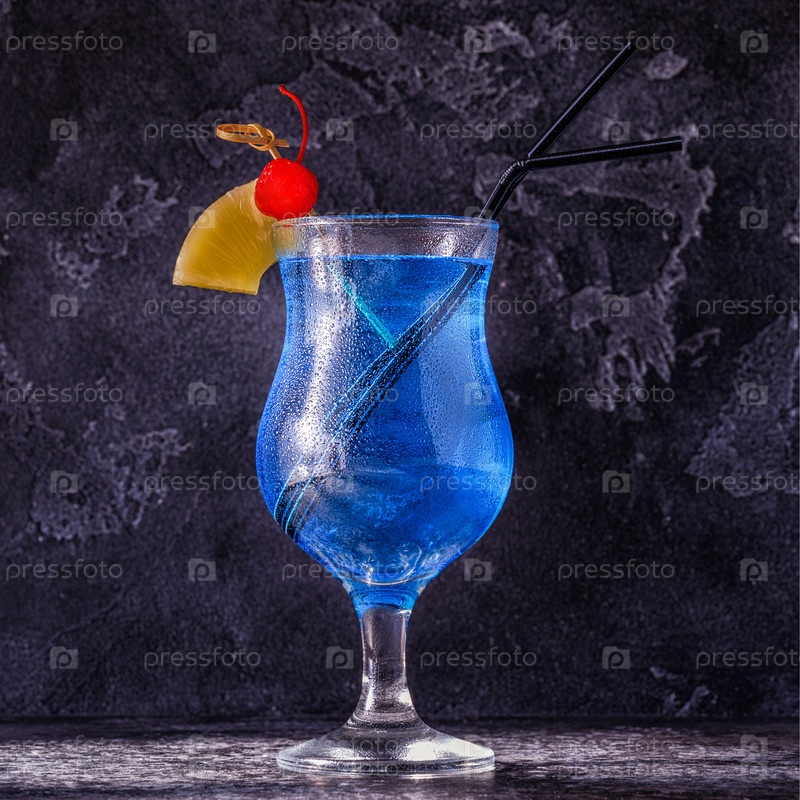 Коктейль Блю Кюрасао, украшенный фруктами