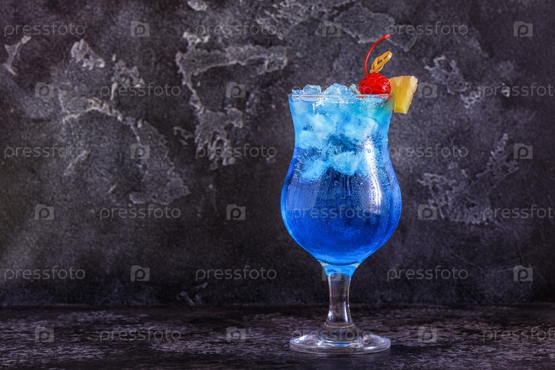 Коктейль Блю Кюрасао, украшенный фруктами