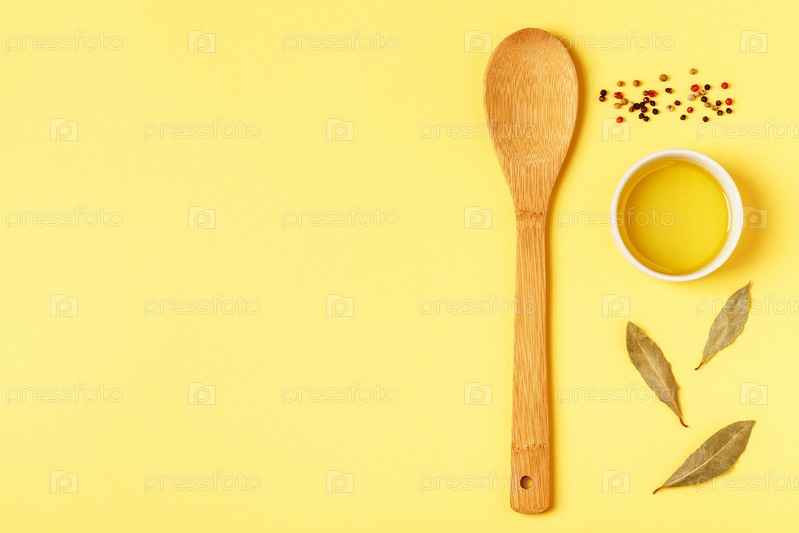 Ингредиенты для приготовления пищи на желтом ярком фоне