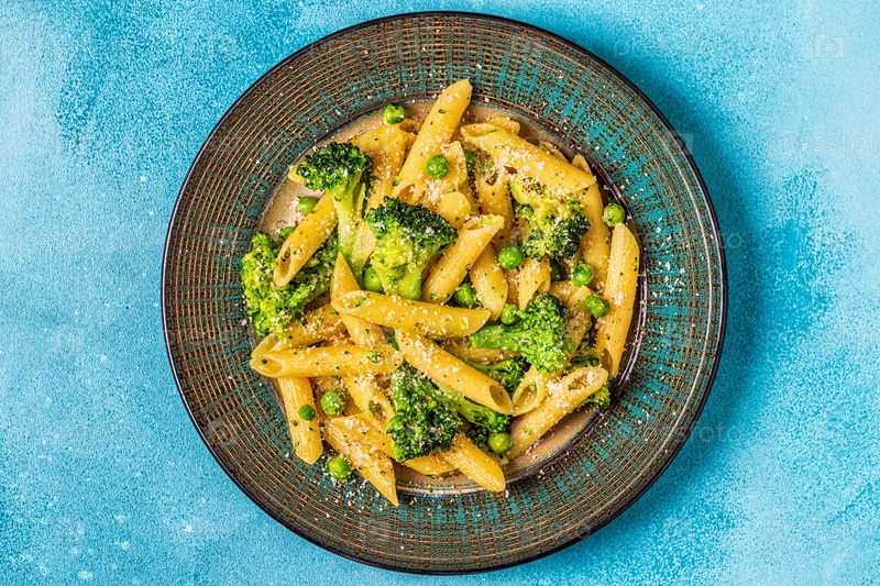 Паста с брокколи, зеленым горошком, чесноком, сыром