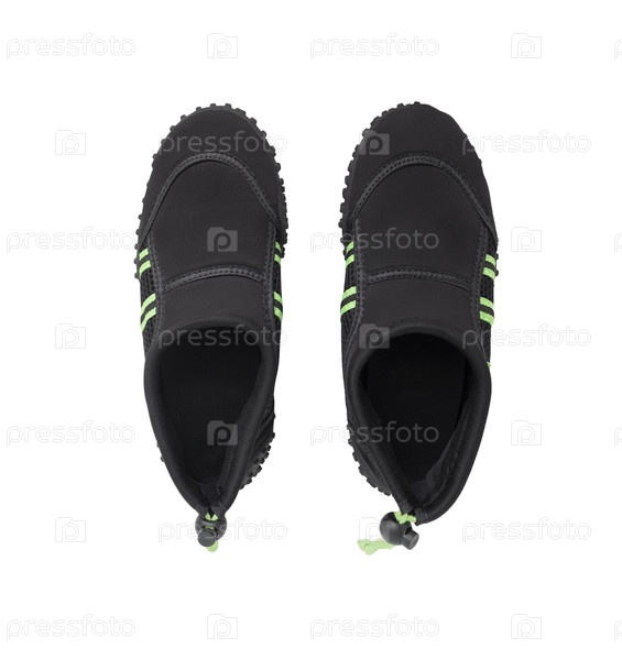 Вид сверху на неопреновые акваобуви на белом фоне