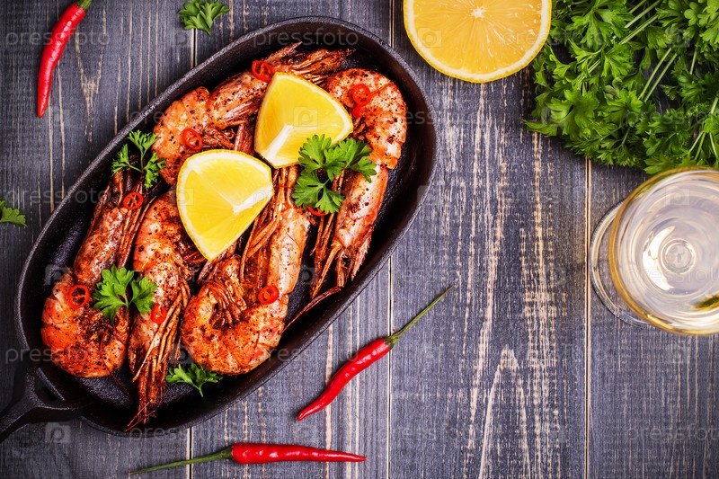 Жареные креветки с лимоном и белым вином